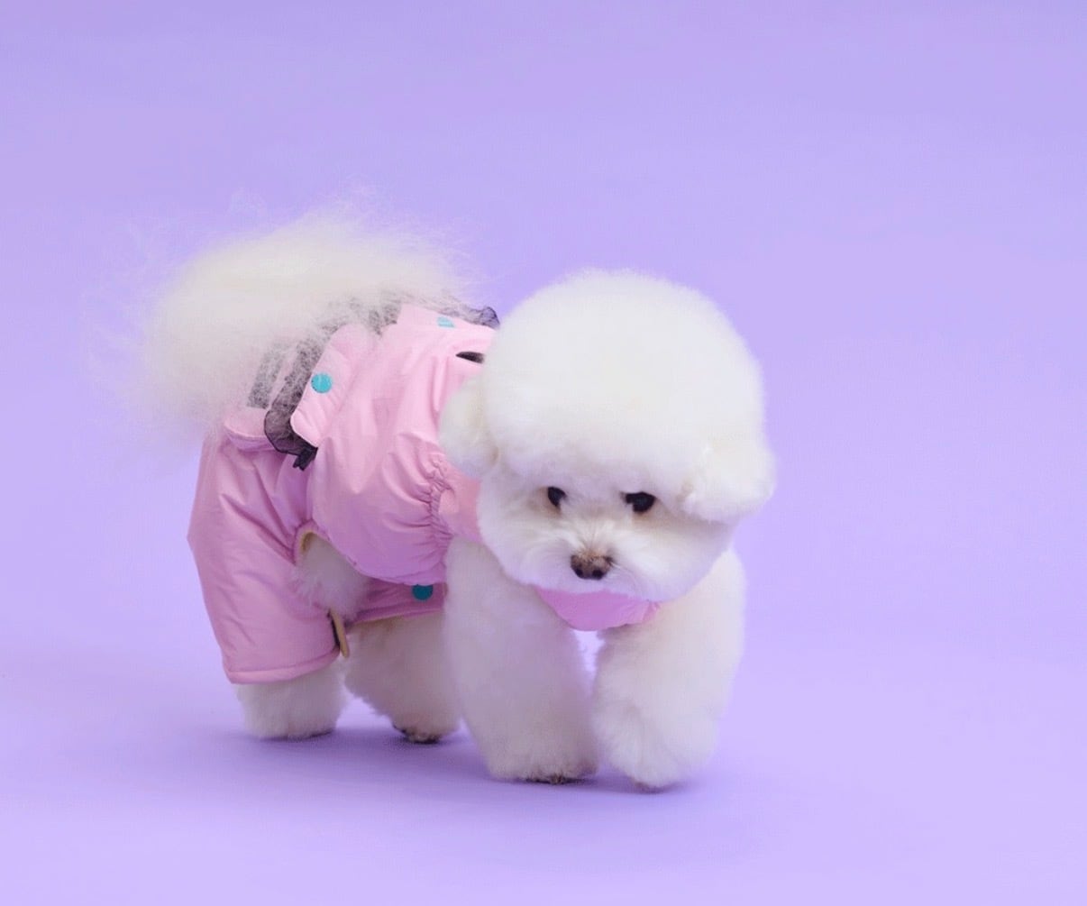 軽くて暖かいパディングジャンプスーツです。ユニークなスタイルが際立ち、寒い日の散歩や活動時に着ると良い、暖かさを提供するスタイルの服です。